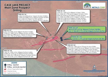 Power Metals have completed several exploration campaigns that have led to the discovery and expansion of new and historic spodumene bearing LCT pegmatites at Case Lake. The Company has drilled a total of 19,607 meters of core between 2017 and 2024 at the Property. The Case Lake Property is owned 100% by Power Metals Corp. A National Instrument 43-101 Technical Report has been prepared on Case Lake Property and filed on July 18, 2017.